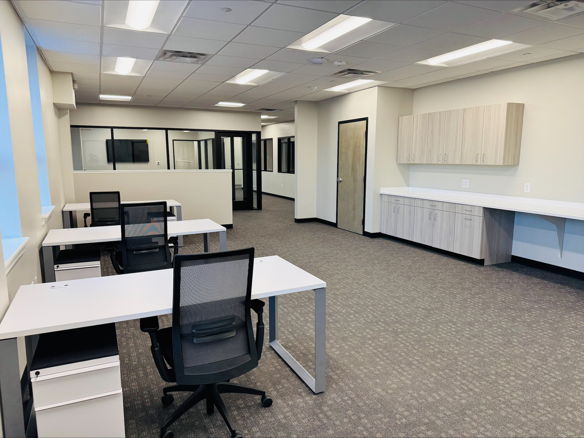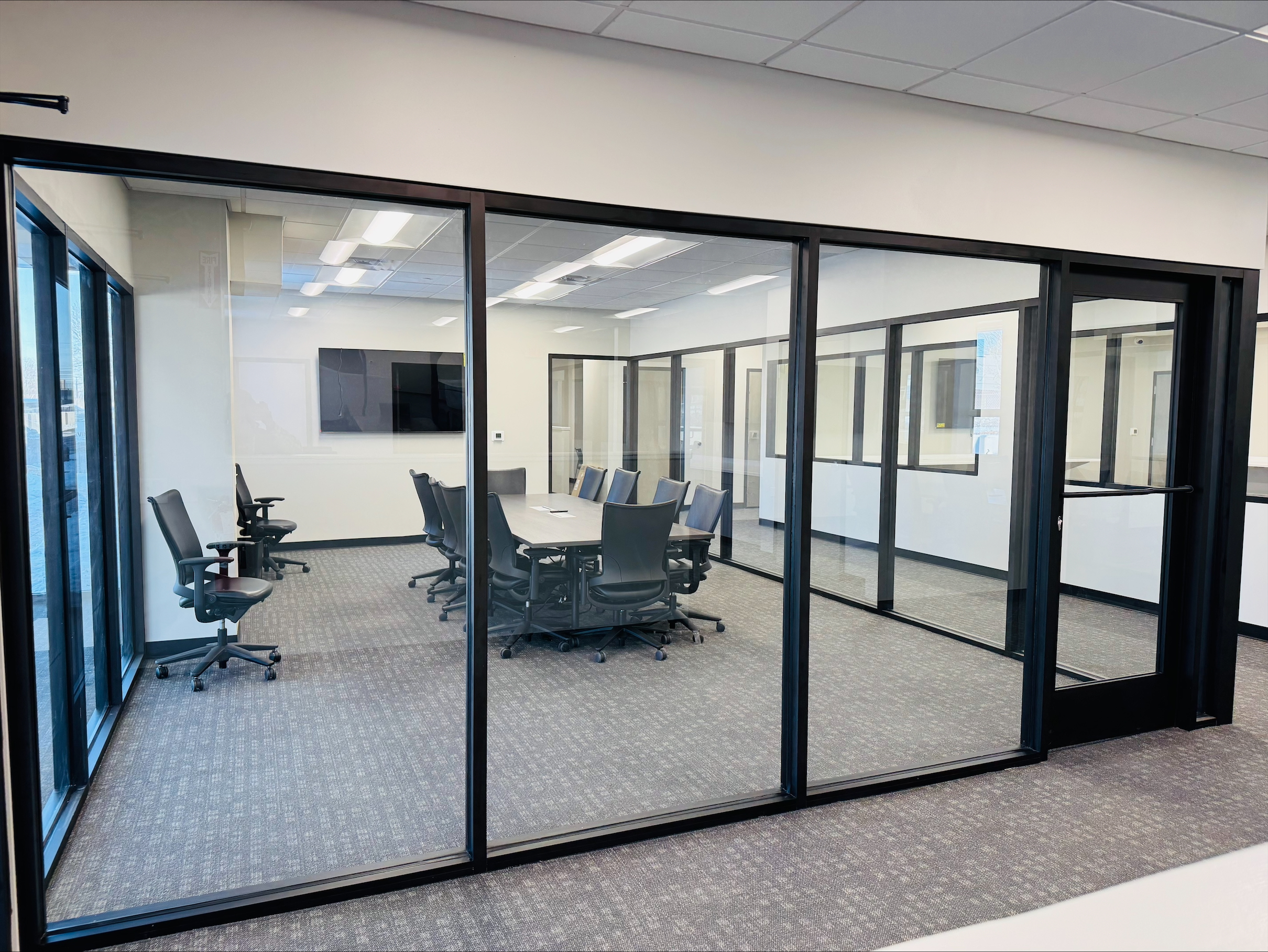 Con-Risk is the headquarters for one of the most powerful construction insurers in the region. This featured exposed brick, an interior conference room garage assembly, as well as an open ceiling concept.